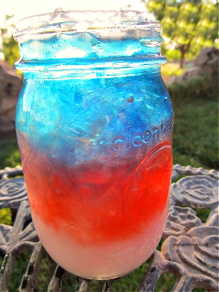 If you wish to know how to make layered drinks without alcohol see this 4th of July drink. It's a Red White And Blue Layered Drink for children and adults.