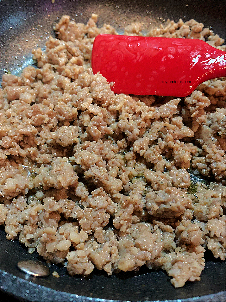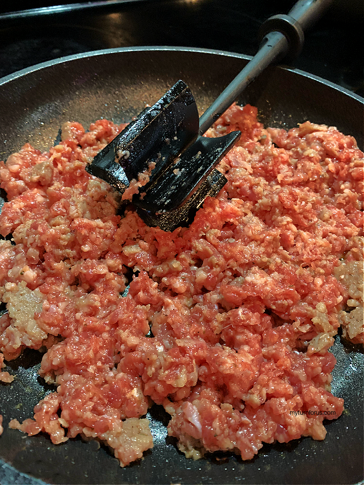 - Preheat oven to 375 degrees F. In a large skillet add sausage and cook over medium-high heat. Use a meat chopper or spatula to break the sausage up as it cooks.