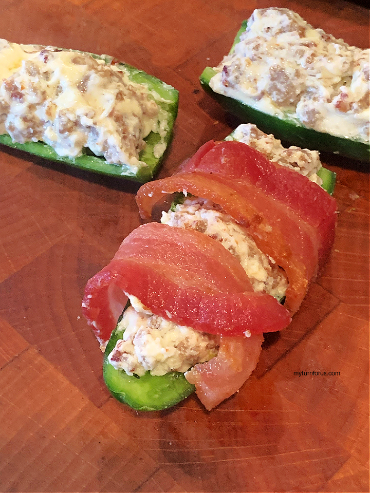 - Precook bacon until almost but not crisp in the microwave or in a large skillet, drain. Bacon needs to be precooked but still limber enough to wrap around the stuffed jalapeño peppers