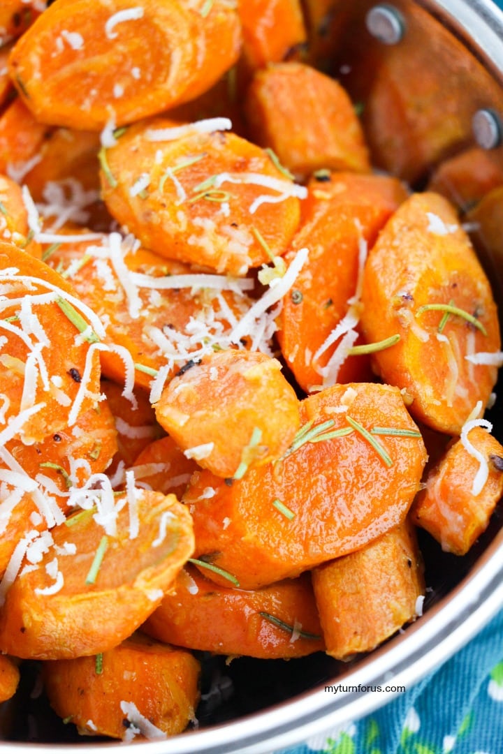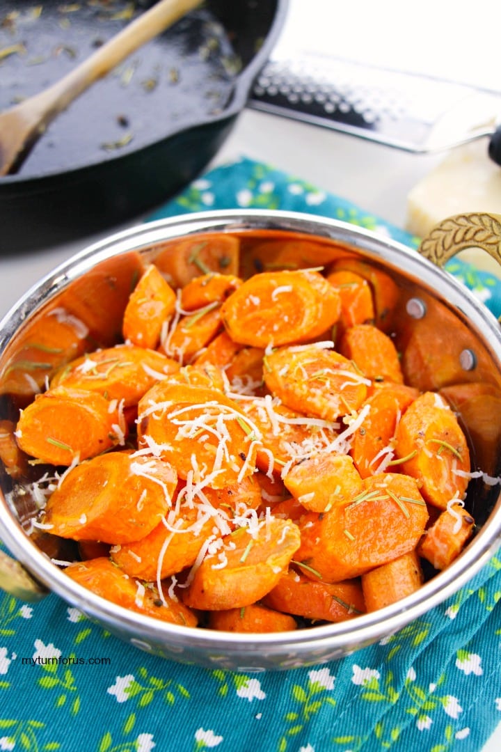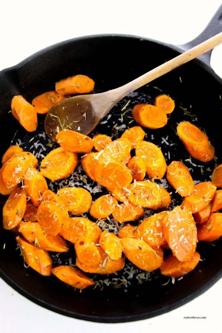 - Pull the skillet off the heat (this stops the garlic and rosemary from overcooking) and immediately sprinkle the Parmesan over the hot carrots. Give it a gentle toss so the cheese melts into buttery little pockets of goodness. Serve right away while it’s steamy and irresistible!
