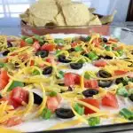 This 7 Layer Dip is so colorful and has an amazing combination of flavors. And this 13 X 9 pan makes plenty for a crowd. It’s a favorite of our many Mexican food recipes and probably one of the most popular appetizers we make. We also serve this Mexican Layer Dip at Family reunions, with drinks on the patio and of course its a must for Super Bowl. It’s easier than making nachos and it takes them to a new level since it’s an Ultimate Layered Nacho Dip. Also, it’s simple to prepare in only 20 minutes. Serve this dip with any of our other game day recipes.