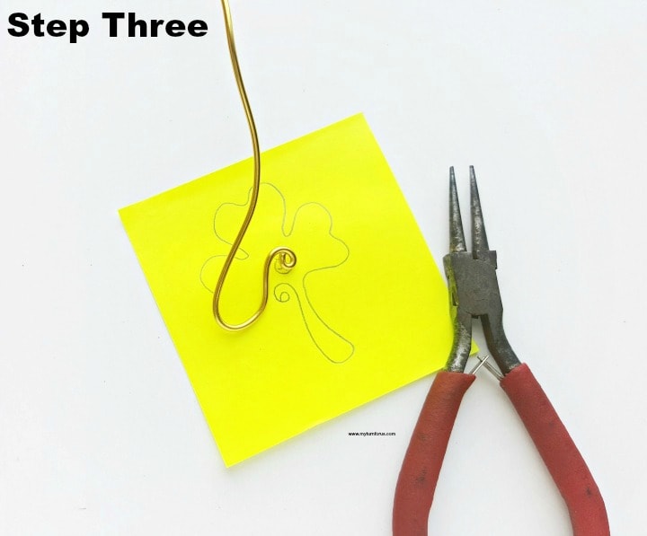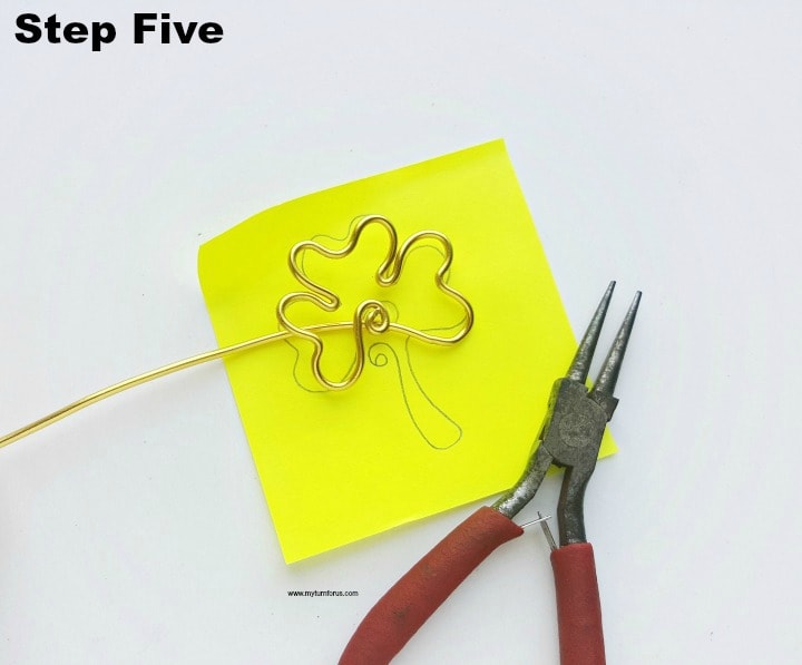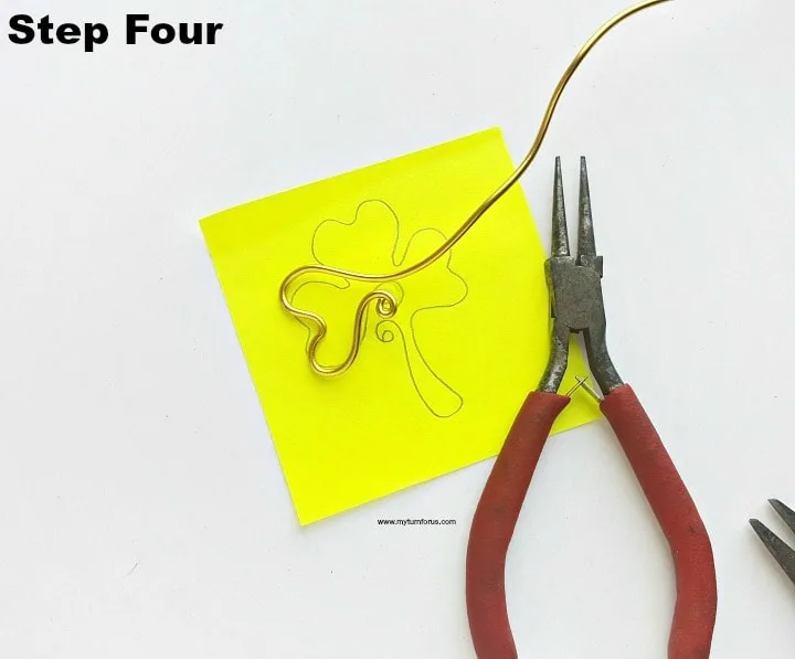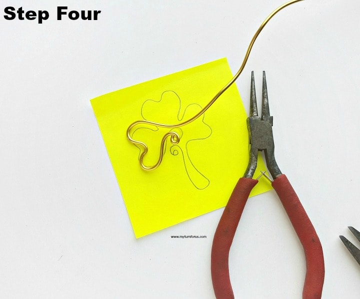 - After tracing around the cloves with the wire using the flat nose pliers to bend the wire along the stem part of the shamrock.