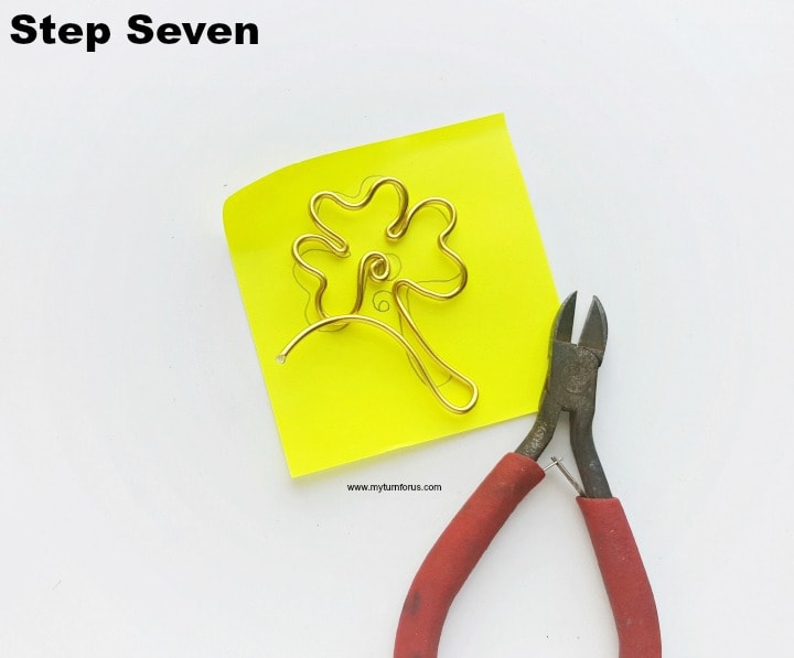 Trace the wire along the shamrock stem pattern using your fingers. And cut off the wire from the bundle keeping a bit of extra wire at its open end.