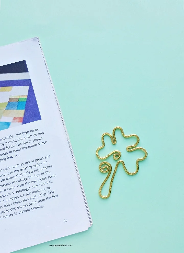 This little gold shamrock wire bookmark is easier than you would believe. Several of these metal bookmarks can easily be made in an afternoon.