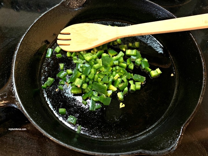 Sauté the jalapeños over medium high heat until tender and slightly charred.