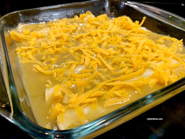Click HERE to save this recipe for chicken enchiladas with green sauce to Pinterest