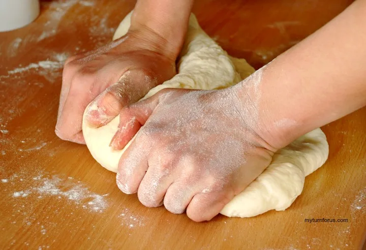 On a floured board or mat, turn the dough out and knead for 4-6 minutes until the dough is smooth and elastic.