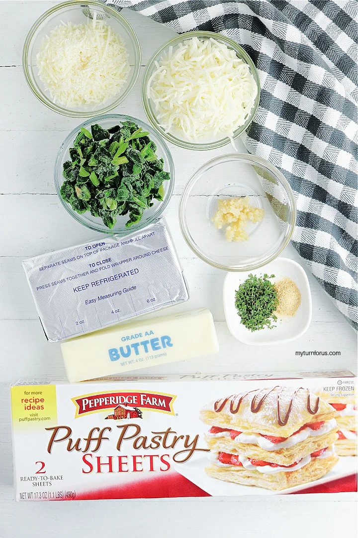 We combine cream cheese, mozzarella, and Parmesan with thawed frozen spinach to create the creamiest, cheesiest filling for these irresistible pastry bites. Wrapped in flaky puff pastry, every bite is pure heaven—crisp on the outside, warm and gooey on the inside.