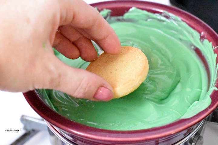 - Repeat with all the remaining marshmallows and allow the cookies and marshmallows to cool completely until chocolate is set before you start making these St Patrick’s day treats