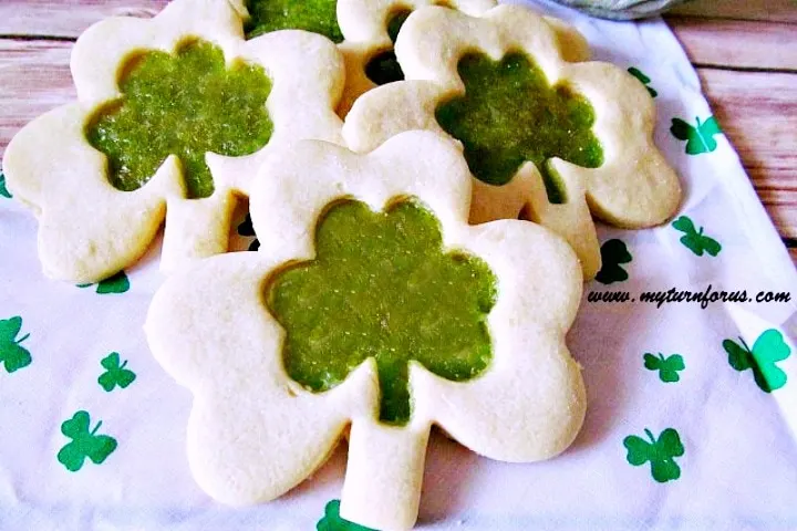 Make these St Patrick’s cookies recipes for easy stained glass cookies or shamrock sugar cookies depending if you use the clear candy centers or not.