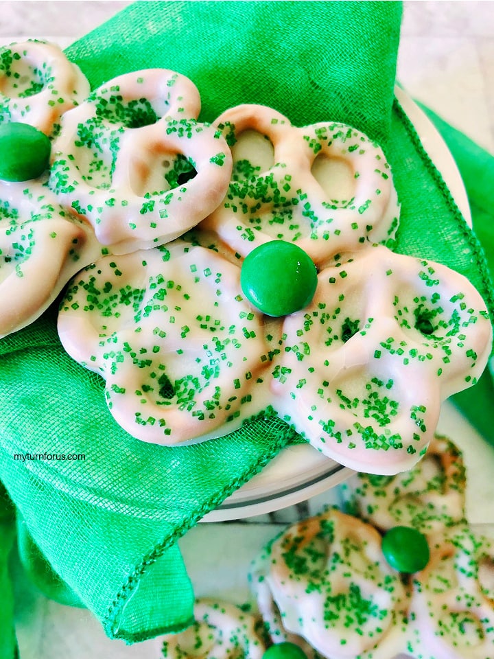 This easy shamrock shaped treat is made with pretzels, white chocolate and candy and is sure to be a crowd pleaser.