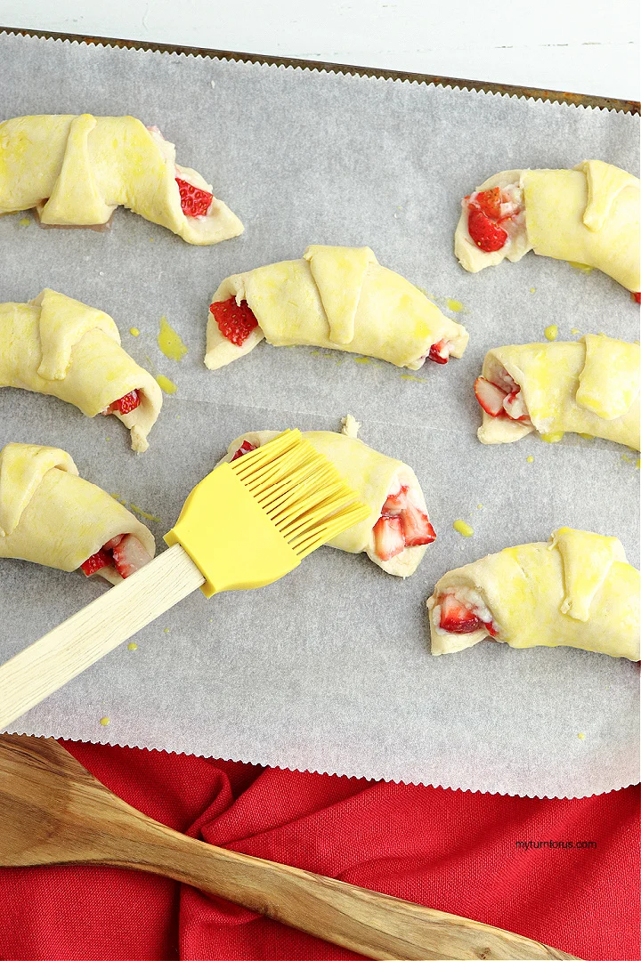 • Place each Strawberry Cream Cheese Crescent Roll on the parchment lined baking sheet.