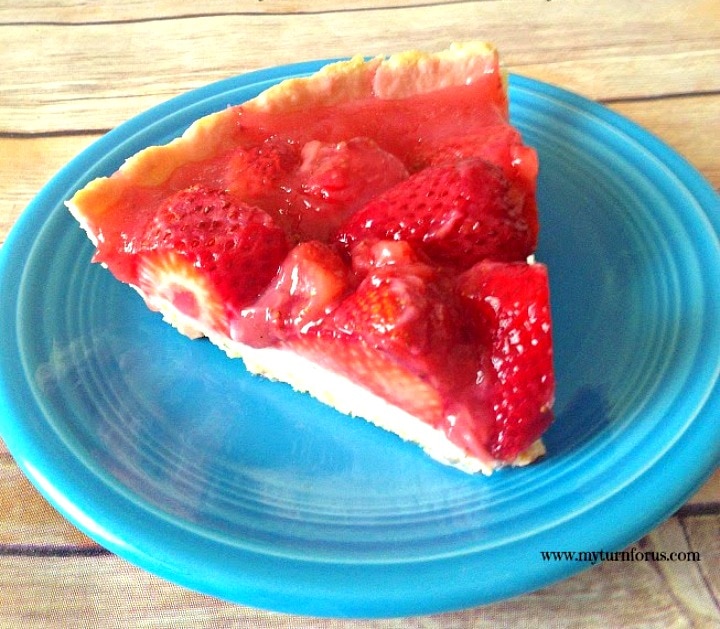 Sometimes you want a no bake strawberry pie, especially in the summer time. And if’s a fresh strawberry pie that is even better. We have come up with this easy strawberry pie recipe with a lemony cream cheese bottom layer that we are sure you family will love. We did cheat a little to make things easier by using a store bought crust but you could certainly use your own pie crust recipe. Either way topping the pie crust with a cool layer of cream cheese lemon curd before adding the sweet fresh strawberries that are thicken with corn starch makes this pie amazing.Â