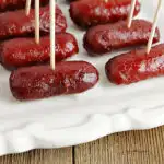 Serve by placing a toothpick in each of these sweet and spicy little smokies and place on a serving dish.