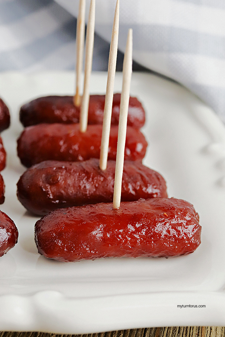 - Serve by placing a toothpick in each of these sweet and spicy little smokies and place on a serving dish.