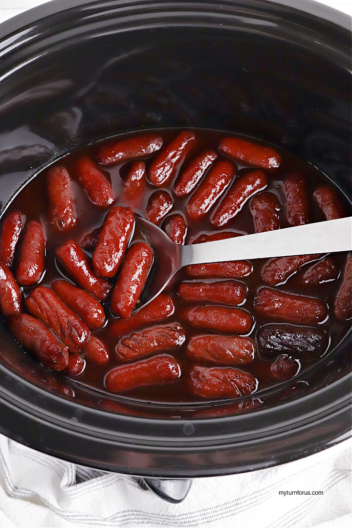 After four hours, remove lid and stir your cocktail wieners before serving.