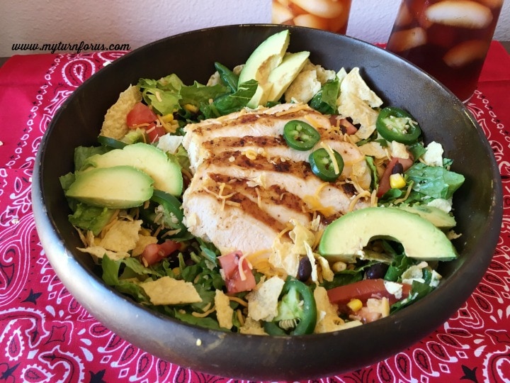 During these long hot summers here on the ranch, we crave salads. You know those fresh cool crisp salads loaded with flavors and color. And if we can make a meal out of a salad we will, each and every time like this Tex Mex Salad.