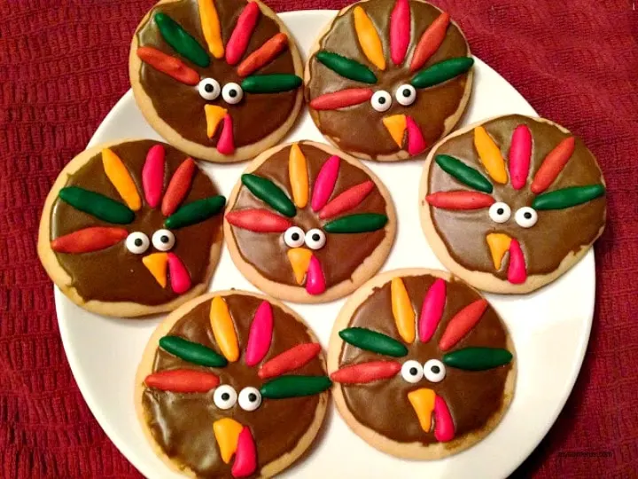 A big treat this morning. My daughter recently had fun making Thanksgiving turkey cookies with her little girls. I asked her to share her super cute recipe with everyone. And she happily obliged so here’s Kristi!