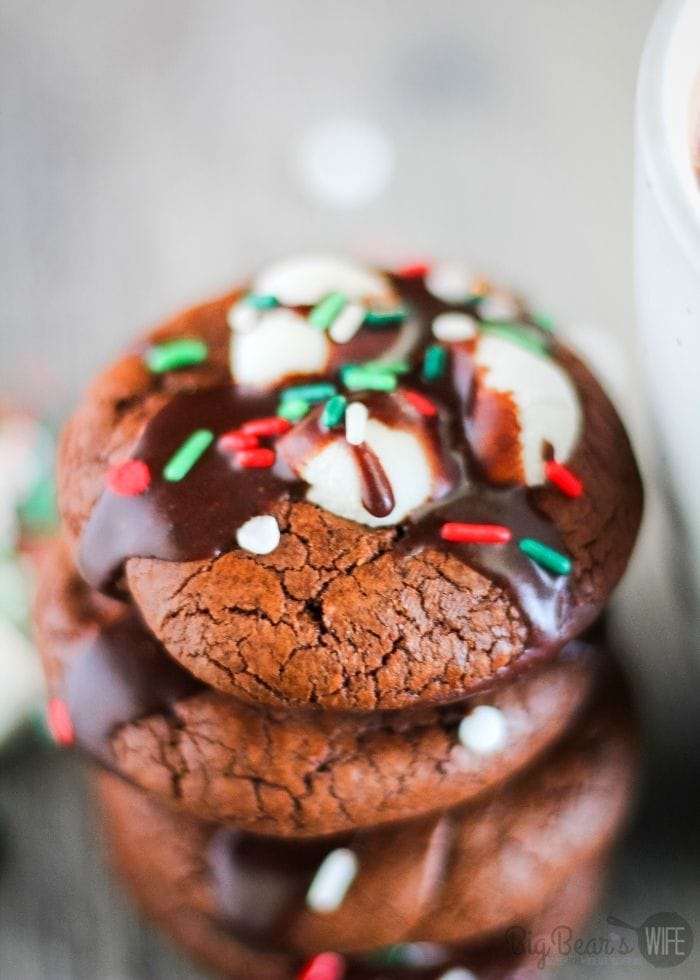 You just have to try these rich chocolate cookies with melted marshmallows and a chocolate glaze drizzle with sprinkles! Such a classic Christmas Cookie Recipe