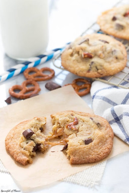 Dark chocolate brownie cookies with gooey caramels and topped with a dusting of sea salt! Awesome!!