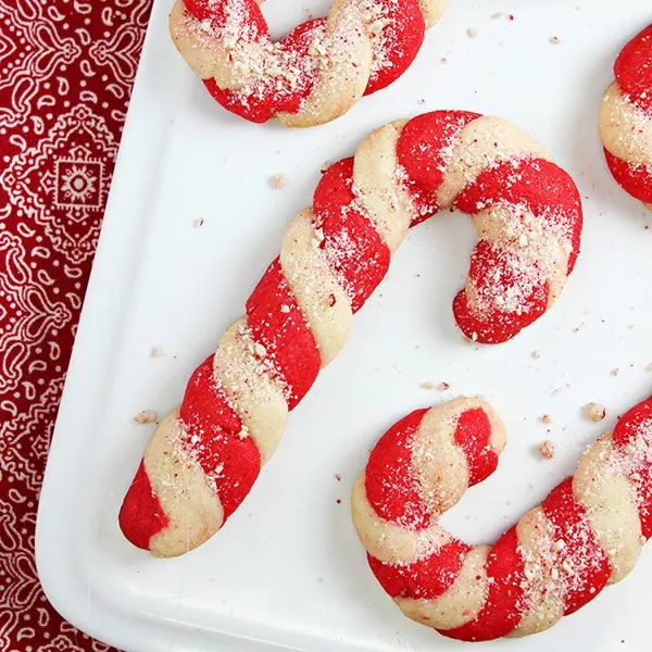 These chewy Christmas Candy Cane cookies use crushed candy canes for a delicious peppermint flavor.