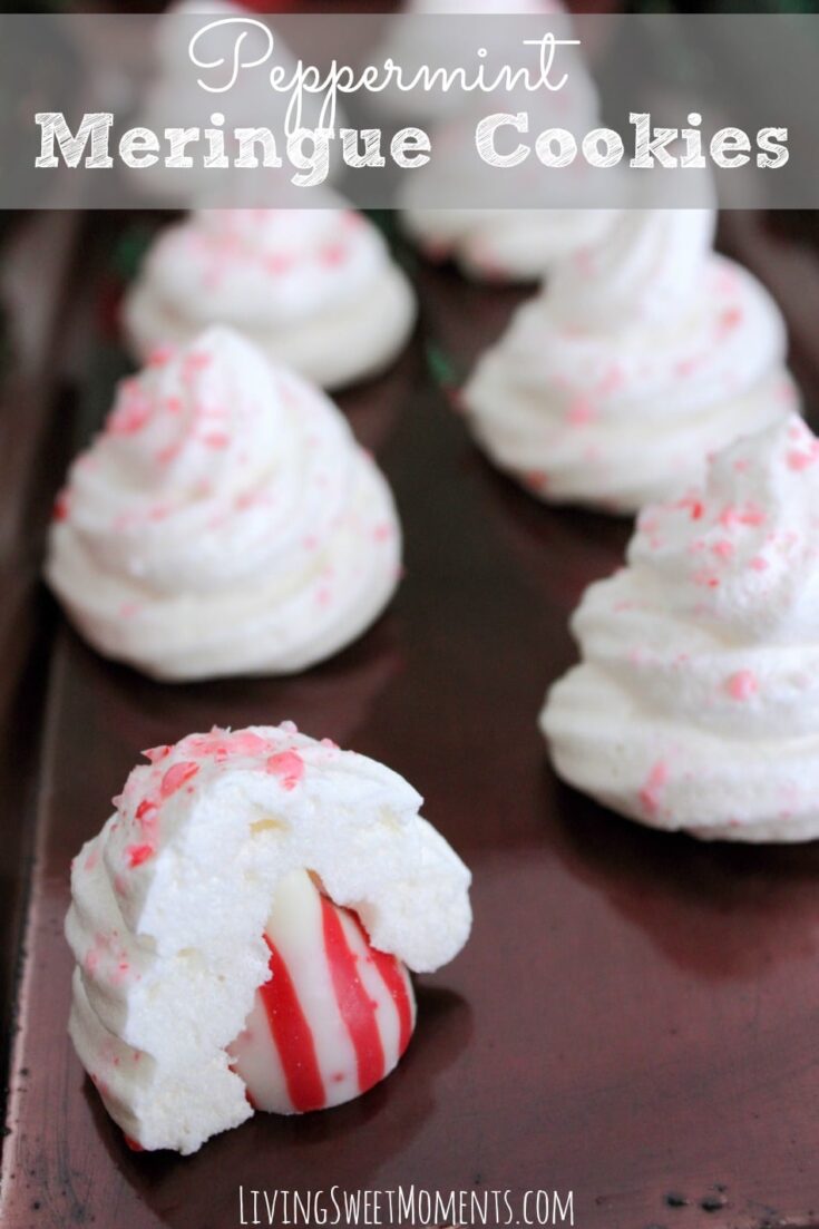 This Peppermint Meringue Cookies Recipe is easy and has a peppermint chocolate kiss hiding inside.