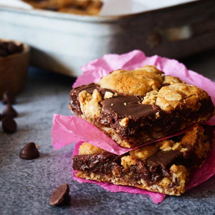Crispy, chewy, creamy fudge, chocolaty, oatmeal bars!! Oh wow!!