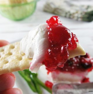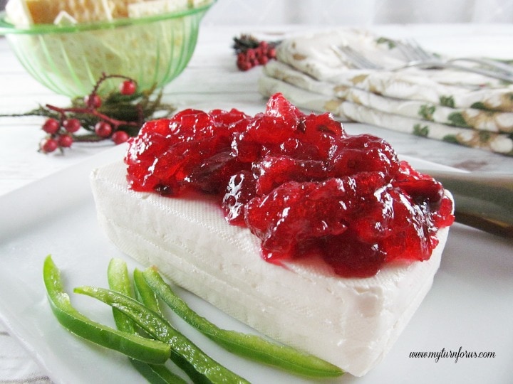 This recipe makes 4 jelly jars (½ pints) of spicy cranberry pepper jelly. It should get you through the holidays in style since each jar is enough to make two Jalapeño jelly cream cheese appetizer plates.