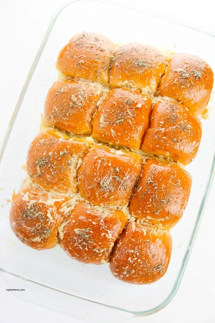 • Sprinkle the poultry seasoning evenly over the tops of the buns. Place in preheated oven and bake for 20 minutes, until butter is fully absorbed and sandwich tops are lightly browned.
