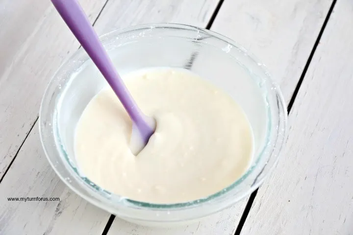 - Combine all ingredients in a medium mixing bowl. Add the amount of pink food coloring to your desired tint