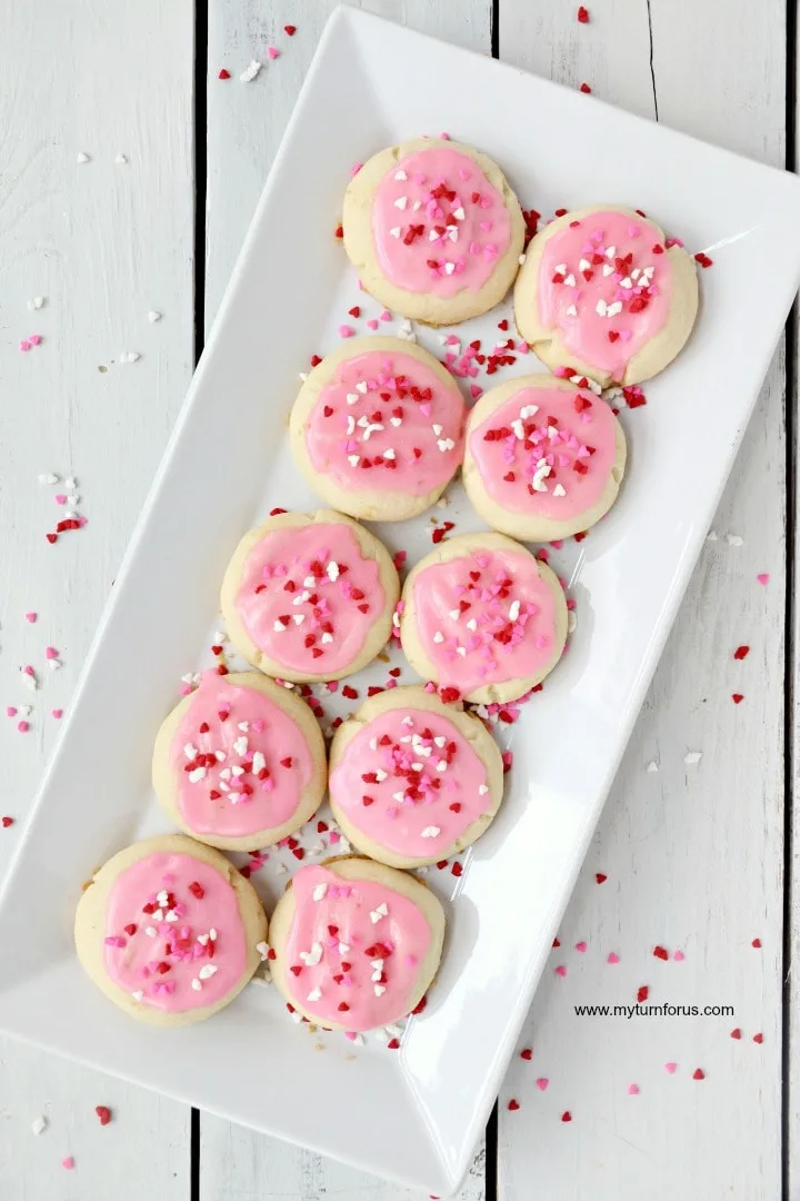 - Frost each cookie and sprinkle with Valentine Sprinkles