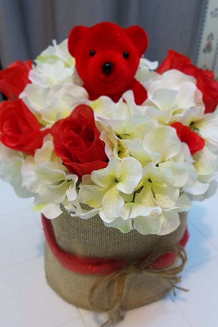 Turn a plastic gallon jug into a rustic burlap Vase for your Valentine's day floral arrangements. Burlap always adds to any farmhouse valentines day decor.