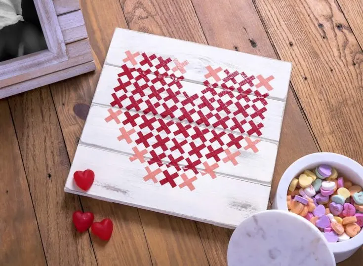 Easy Faux Cross Stitch Valentine's Artwork looks so super cool. It's such a simple little pattern but so clever!