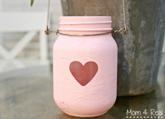 Cute DIY Mason Jar Lanterns that can be hung or used as a Valentine's Day Centerpiece!