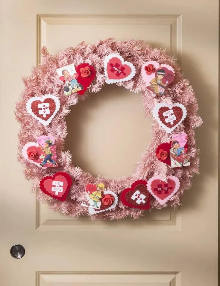 A Glue Gun and creativity you can make this unique valentine wreath in 15 minutes. OH WOW!