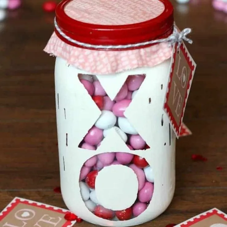 This is an easy DIY Valentine’s Day Mason Jar filled with Valentine’s Candy for gifts or for your Valentine's Day Decor