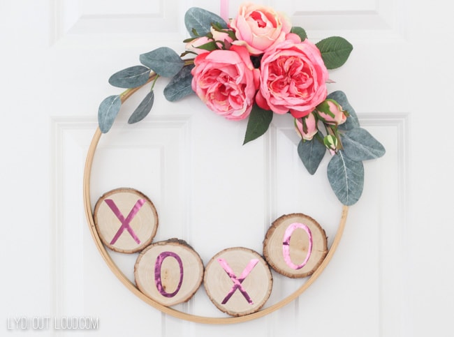 Create a simple and elegant Valentine’s Day Hoop Wreath with wood slices that can be quickly transformed for every holiday and season! We are loving this farmhouse valentines day decor.