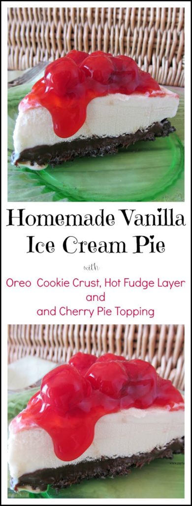 Keyword four layer ice cream pie, Homemade vanilla ice cream pie, Ice cream Pie with Cherry Topping, ice cream pie with Oreo crust